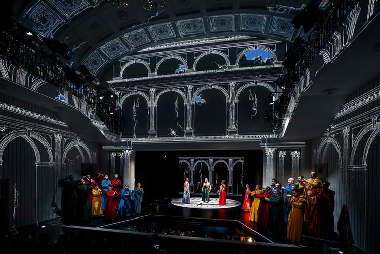 The idea was to create an immersive 360 degree style scene within the inside of the Opera House, using video projections matching the interior of the building, the theme of which is a visual planetarium leading into the theme of the Opera where Castor and Pollux eventually become stars in the universe.